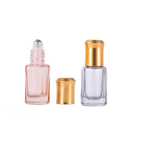 Botella de rodillo Octágono de vidrio de aceite esencial 3ml Perfume Attar Fancy Roll on Bottles