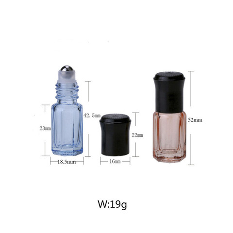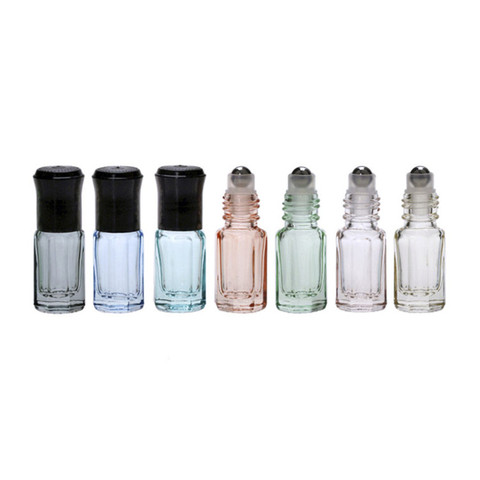 Roll on Botella de perfume 3 ml Botella de aceite esencial 6ml Octagonal Mini Multi Color Perfume Roll on Botellas de vidrio con tapa