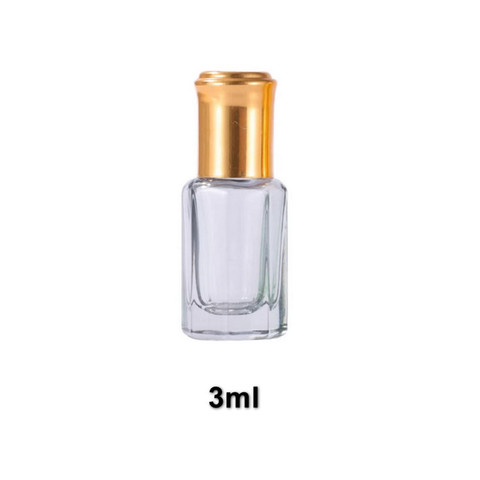 Botella de vidrio con forma octogonal de aceite Attar de 3 ml, botella de Perfume de vidrio de muestreo con tapa de bola enrollable