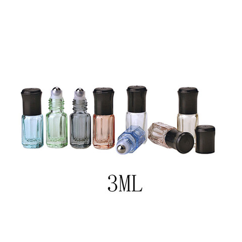 3ml Nuevas botellas de rodillo de vidrio coloridas Mini rollo en forma especial en botella/Contenedor de aceite esencial rosa azul negro