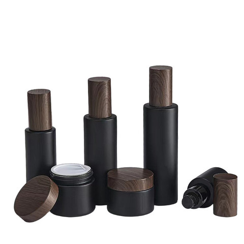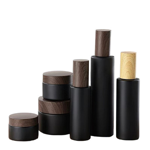 ขวดแก้วสีดำด้าน30มล. 50มล. 100มล. และขวดแก้วสีดำด้าน30ก. 50ก. พร้อมฝาพลาสติกไม้