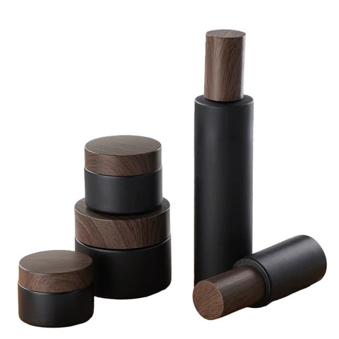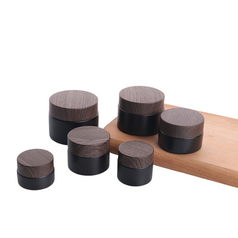 โหลแก้วใส่ครีมดำด้าน15g 30g 50g 100G ภาชนะแก้วพร้อมฝาไม้พลาสติก