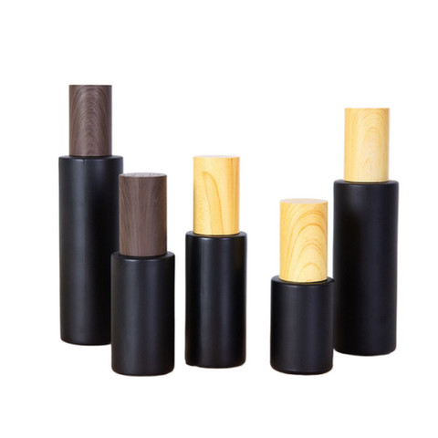 ขวดแก้วใส่ครีมกันแดดพร้อมฝาไม้สเปรย์น้ำอิมัลชันสำหรับใบหน้าขวดน้ำสำหรับเครื่องสำอาง